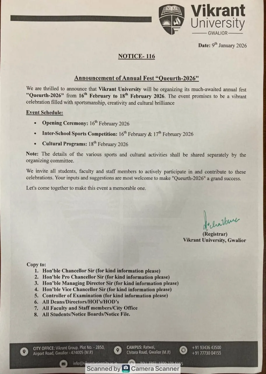 Vikrant University is the Best University in Gwalior with a vision to redefine higher education, research, and innovation. We are dedicated to fostering an interdisciplinary ecosystem for academic excellence and holistic growth. Our commitment is backed by state-of-the-art infrastructure, a passionate team, and advanced resources.