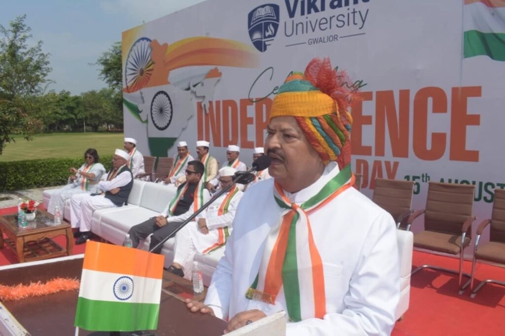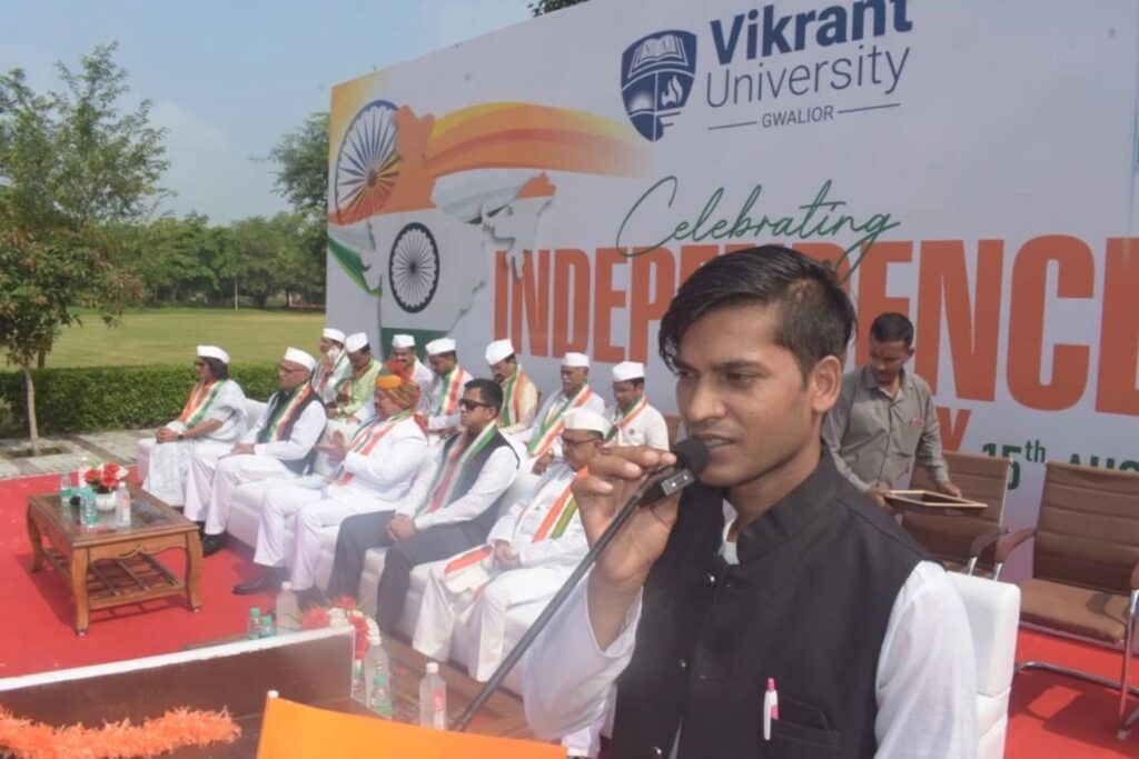 Vikrant University, Gwalior, celebrated India’s 79th Independence Day with great enthusiasm and pride. We have turned another glorious page on the journey of our great nation. The celebrations on campus demonstrated not just the joy of freedom but were also a testimony to our deepest gratitude for the sacrifices made by so many people, including our ancestors, who gave us independence.