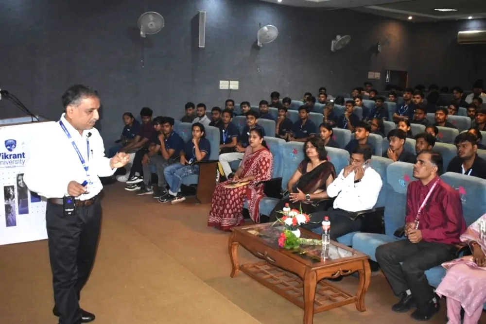 Event Photos Events Queurth (Annual Fest) Sports Tech Fest ATHENA 33rd Quality Circle Forum of India (QCFI) Gwalior Chapter @VU 33rd Quality Circle Forum of India (QCFI) Gwalior Chapter @VU 33rd Quality Circle Forum of India (QCFI) Gwalior Chapter @VU Students and staff members of Vikrant University participated in the -Namo Marathon Vikrant University organized a Fire Safety Awareness Program at Govt. H.S. School Aagaaz – Fresher’s Party 2025 @VU Aagaaz – Fresher’s Party 2025 @VU Pharmacovigilance Week Celebration 2025 @VU Pharmacovigilance Week Celebration 2025 @VU Time-zone DB Mall, Gwalior, successfully organized a game activity at Vikrant University Vishkarma Jayanti celebration at Vikrant University Managing Director of Vikrant University, participated in the Chapter Convention on Quality Concept Workshop on Cracking the Code Resume Scanning & Job Analysis Technical visit to a Ready-Mix Concrete (RMC) plant in Gwalior Workshop on CO₂ Lasers by Dr. Manoj Kumar, Head of CLTS, RRCAT Indore Teachers Day 2025 at VU Teachers' Day Celebration at VU 2025 Teachers' Day Celebration 2025 Managing Director of Vikrant University represented India at ICQ 2025 Industrial visit to the Centre for Agribusiness Incubation and Entrepreneurship Vikrant University celebrated the 79th Independence Day Educational visit to the Gwalior Incubation Centre G-Incube Ganesh Chaturthi Celebration 2025 at VU Session on How to Plan for a Startup- Legal & Ethical Steps Orientation session for the Vikrant Promise Programs Assessment of The Vikrant Promise Program Vikrant University celebrated the 79th Independence Day Orientation Program for the new batches Session on Career progression skills @VU Educational field trip to the Agricultural Research & Development Center, Sakatpura Guest Lecture Indian Education System & Career Guidance Inaugurated a Vidhik Gallery at the Vivekanand Block Orientation Program for the new batches Felicitation ceremony to honor and recognize the outstanding academic achievements Orientation and Induction Programme for newly admitted students Vikrant University and Nayi Duniya Send Handmade Rakhis to Soldiers CODATHON-2025 by IEEE Student Branch Seminar on Regulation of Medicine Prices and the Drug Price Control Order (DPCO) by the National 5. Pharmaceutical Pricing Authority (NPPA) Industrial Visit to SRF industries during ATAL FDP Vikrant University Organizes Farmer Seminar on Modern and Sustainable Agriculture Vikrant University Partners with Quality Circle Forum of India (Gwalior Chapter) to Implement 5S Workplace Management Vikrant University, Gwalior successfully inaugurated the ATAL Faculty Development Program Vikrant University organized a -Nasha Mukti Awareness Program Achievers' Dinner with the Honorable Chancellor to Recognize and Reward Academic Excellence Plantation Drive by NCC Unit Vikrant University has signed MoUs with renowned medical institutions Vikrant University, Gwalior, signed an MoU with Simplifying Skills Vikrant University Celebrated Yoga Sangam on the occasion of International Yoga Day The IEEE Student Branch of Vikrant University successfully conducted the Tech Quiz Bowl Vikrant University hosted a Safety Awareness Program featuring Mr. Rituraj Mehta, Group Safety Head at Adani Group, as the guest speaker Students of Vikrant Group actively participated in a comprehensive mock drill simulating a fire emergency scenario World Environment Day Celebration at Vikrant University Awareness Program to commemorate World No Tobacco Day Hike Education conducted a Placement Drive Awareness on Disaster Management in collaboration with the National Disaster Response Force (NDRF) Hon'ble Chancellor, Shri Rakesh Singh Rathore, participated in the 37th AUAP Annual Conference Aspire Expo – Job Mahakumbh 2025 Aspire Expo – Job Mahakumbh 2025 Aspire Expo – Job Mahakumbh 2025 Signed a Training MoU with Virohan, a leading healthcare edtech company B.Tech- EE students , has secured the top position in the Clean and Green Energy category at SRIJAN 2025 Farewell Party of B.Tech final year students (Batch 2021-2025) First University in the Northern Region to sign a MoU with the Quality Council Forum of India Civil Defence Awareness Program @ Vikrant University Two-day awareness campaign Indian Knowledge Tradition Promotion Campaign Two-day awareness campaign - Indian Knowledge Tradition Promotion Campaign Ek Pakshi - Ek Sakora program on May 3, 2025 Special lecture on Solar Energy: Understanding of Climate Change and Corrective Action Pre-Placement Training Workshop Career Crafting Building Your Skills for Employment Open Forum Meet of Students with Hon'ble Chancellor sir Pre-Placement Workshop Career Crafting Seminar on Industry 4.0 Revolution Vikrant University organized a seminar to honor the legacy of Baba Saheb VU Students Participated in the 2nd Justice R.R Aggarwal Memorial National Moot Court Competition Vikrant University has established the IBM Innovation Centre for Education, First in Gwalior Region Inauguration of the IEEE Student Branch at Vikrant University Session on Excellence in Quality Education by Mr. D.K. Shrivastava Executive Director QCFI Educational visit at Central Jail Gwalior Laboratory visit at Regional Ayurveda Research Institute (RARI), Gwalior Informative session on Emergency Response Training Celebrated the National Science Day 2025 Talent Hunt with My FM and Honda Session on Mathematics for first-year students by Dr Krishna Raj Choubey Seminar on preparing the resume and profile for the Engineering Students VU Students participated in the All India Agriculture Exhibition and Farmers Fair Fire Safety Awareness Program at IOCL Bio-CNG Plant, Adarsh Gaushala Industrial visit to MHPS, MPPGCL, Madhikheda , Shivpuri Power Generation Plant West Zone Inter-University Kho-Kho (Men) Tournament 2025 @VU West Zone Inter-University Kho-Kho (Men) Tournament 2025 @VU West Zone Inter-University Kho-Kho (Men) Tournament 2025 @VU West Zone Inter-University